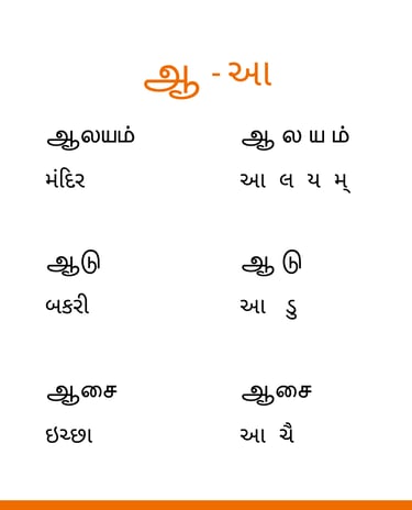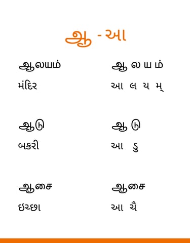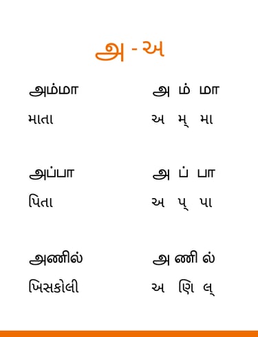 To learn Tamil we have conversations and sentence formation and more through audio video materials. You can check our youtube channel @want2learn. This basic book gives you the vowels and the related words. The pronunciation and meaning are given in English. If you have any questions or doubts you can discuss this in our community